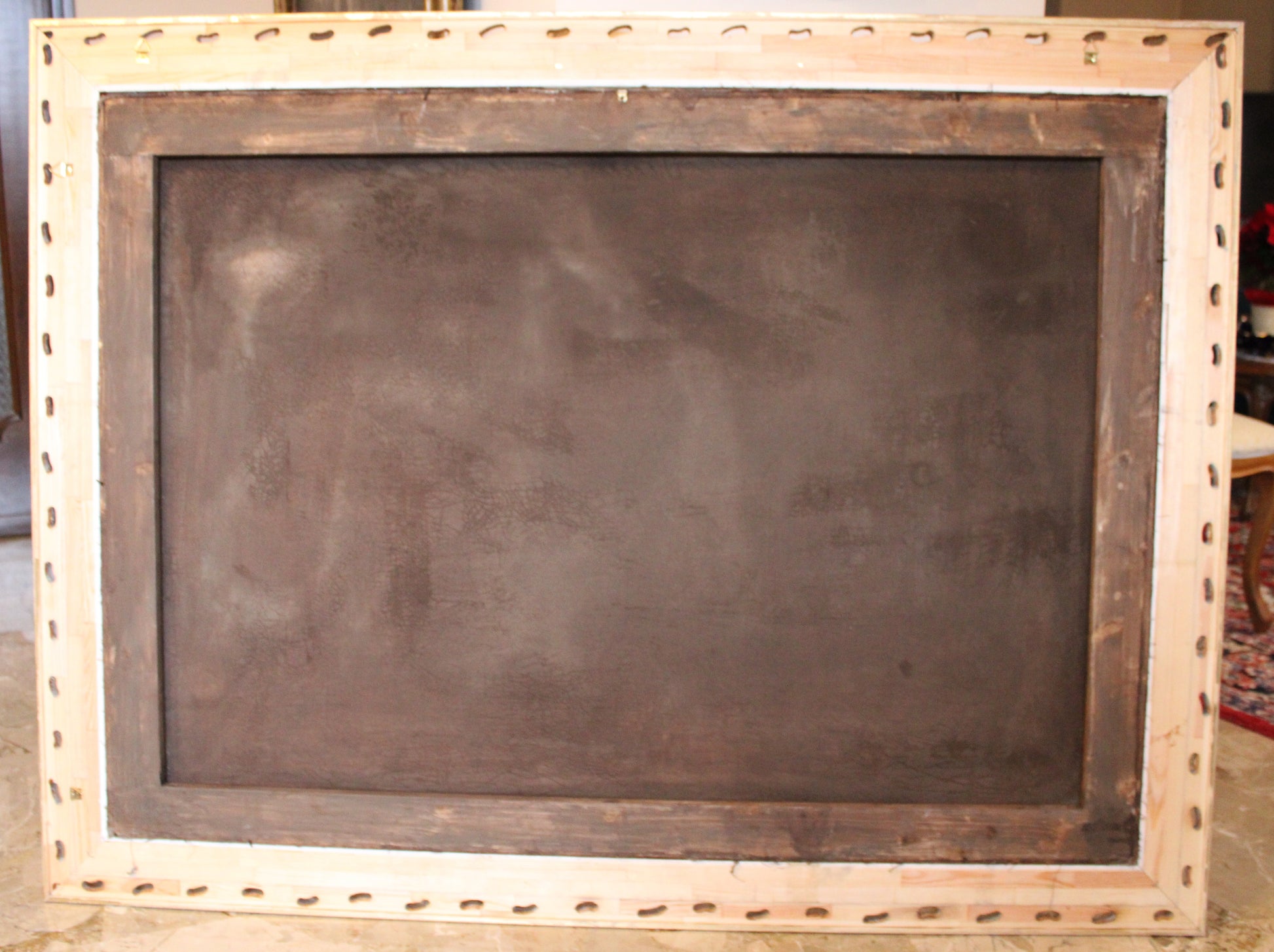 Le dimensioni sono 115,5cmx152cm con la cornice e 133cmx96cm senza.