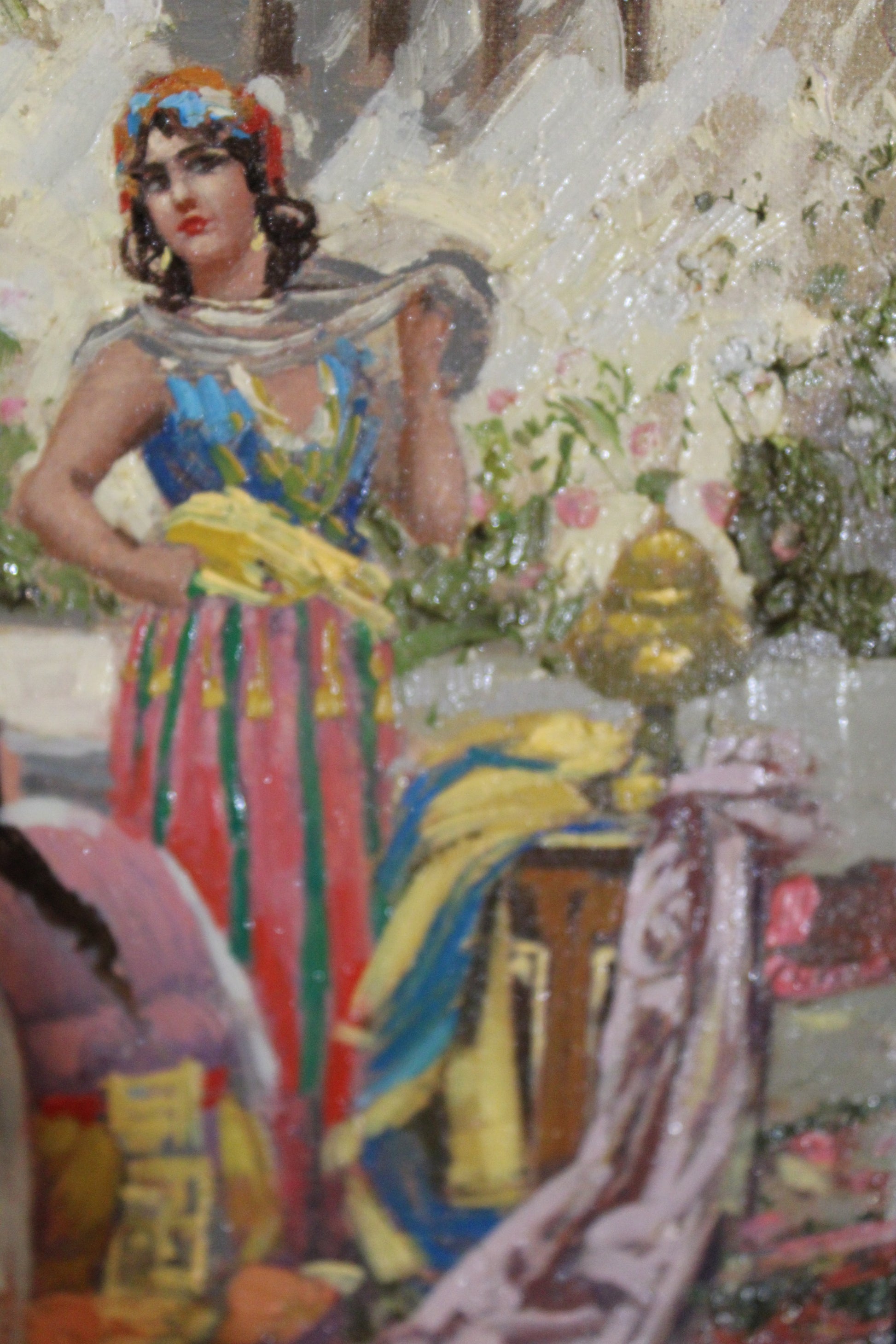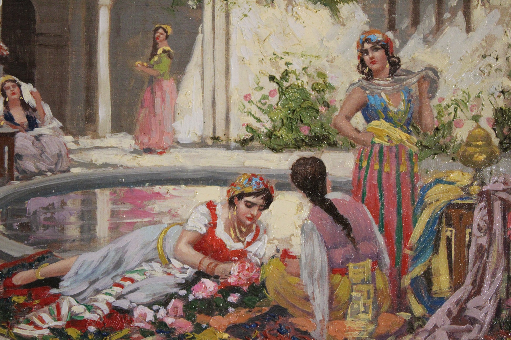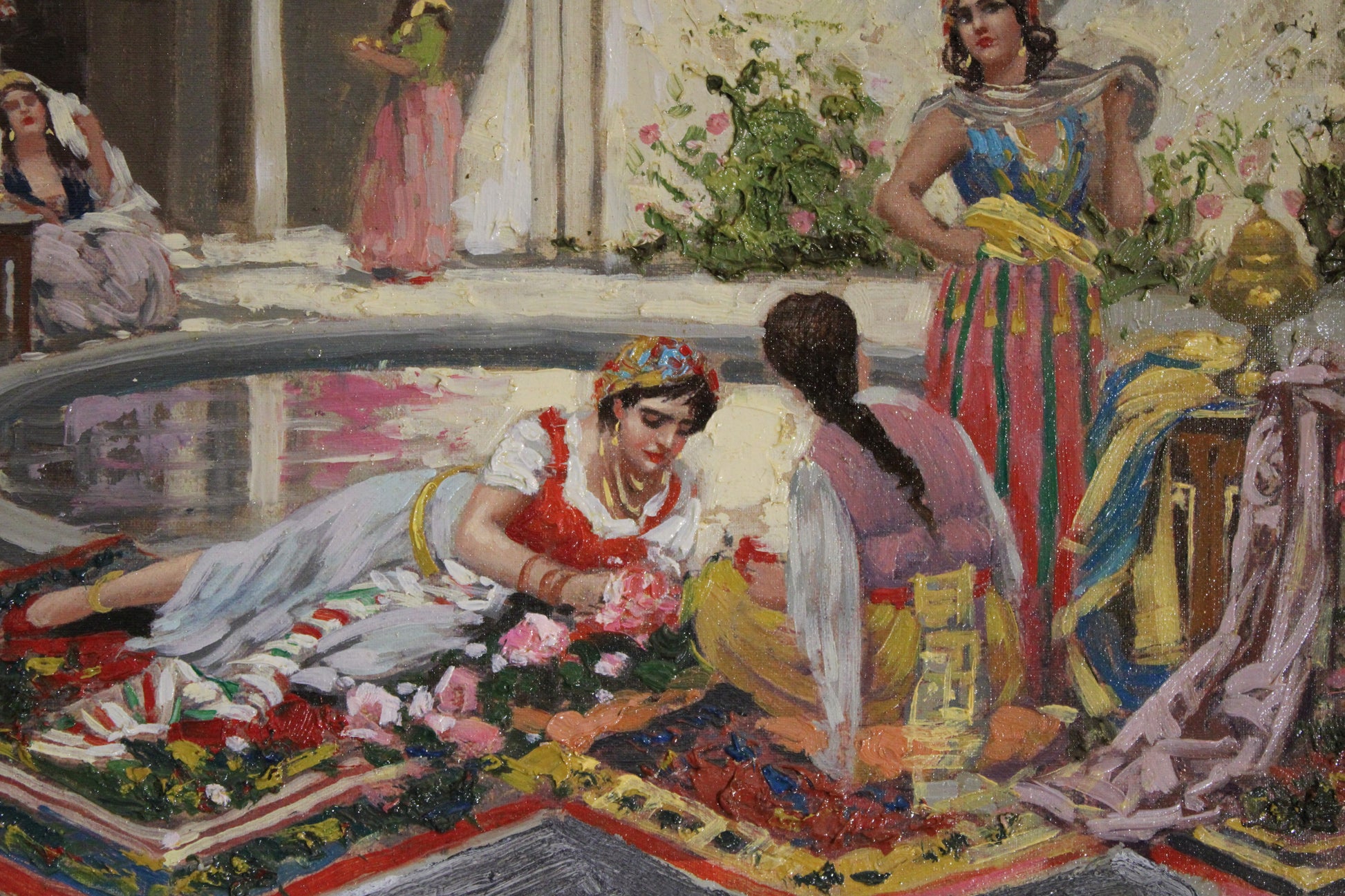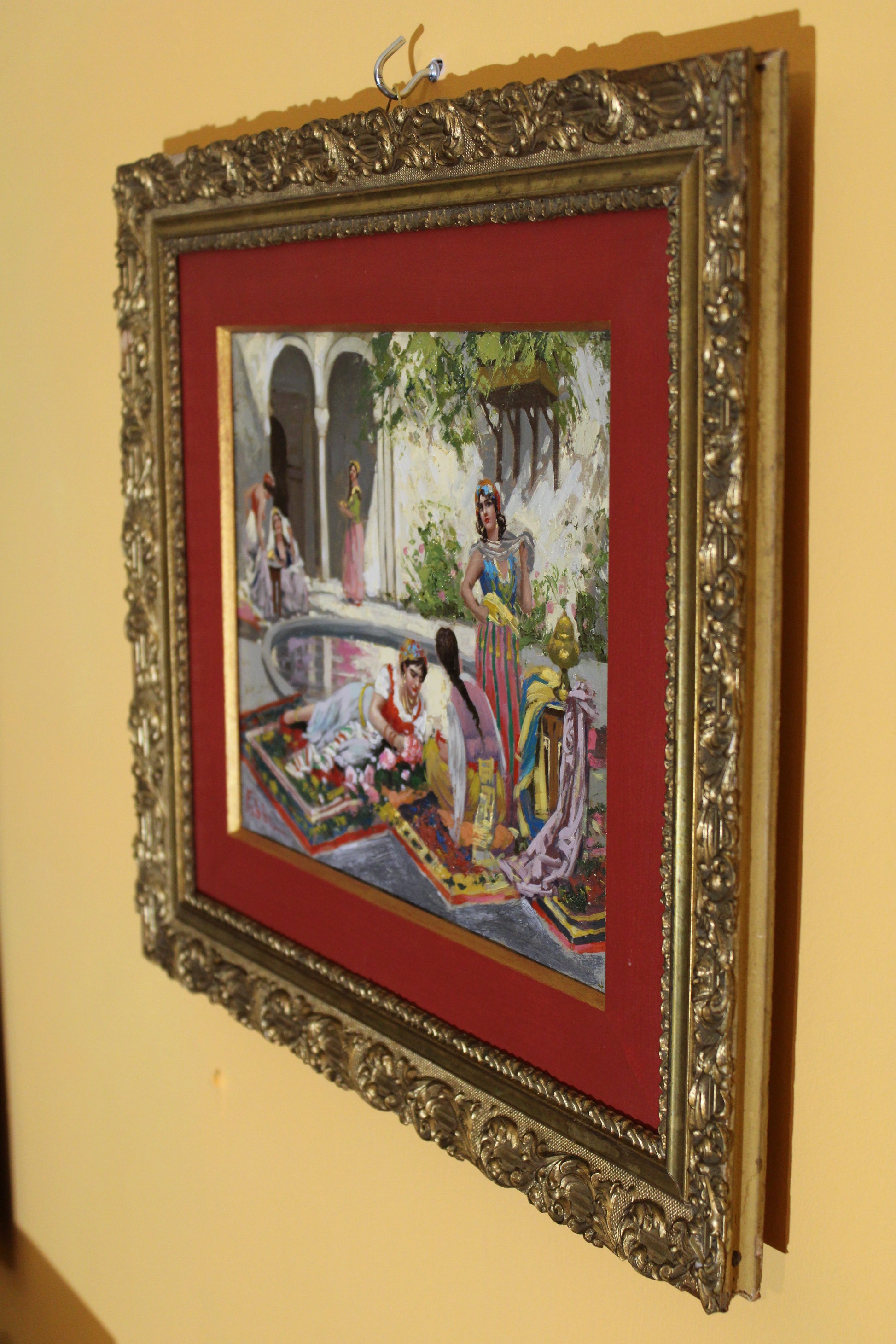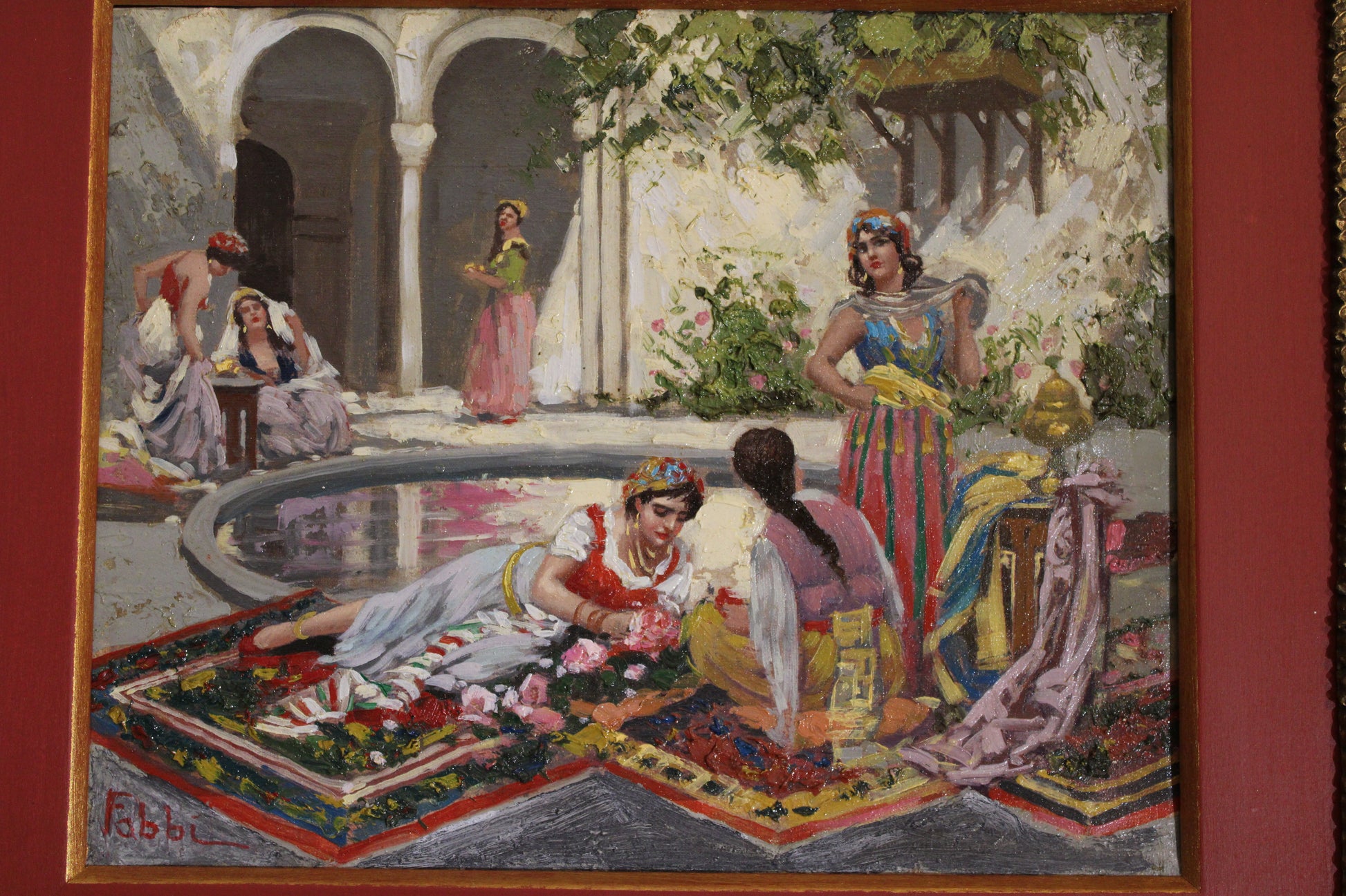 E' realizzato con grande attenzione al particolare; i colori, la presenza di queste fanciulle orientali, del tipico cortile descritto già in altre opere del Fabbi, dei tappeti persiani ne fanno un opera sicuramente da ricondurre alla paternità del grande artista bolognese.